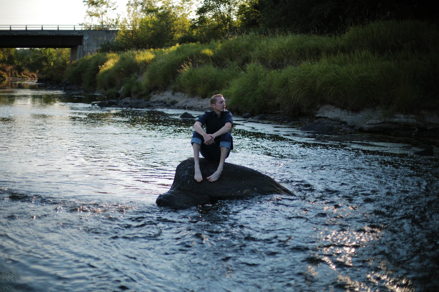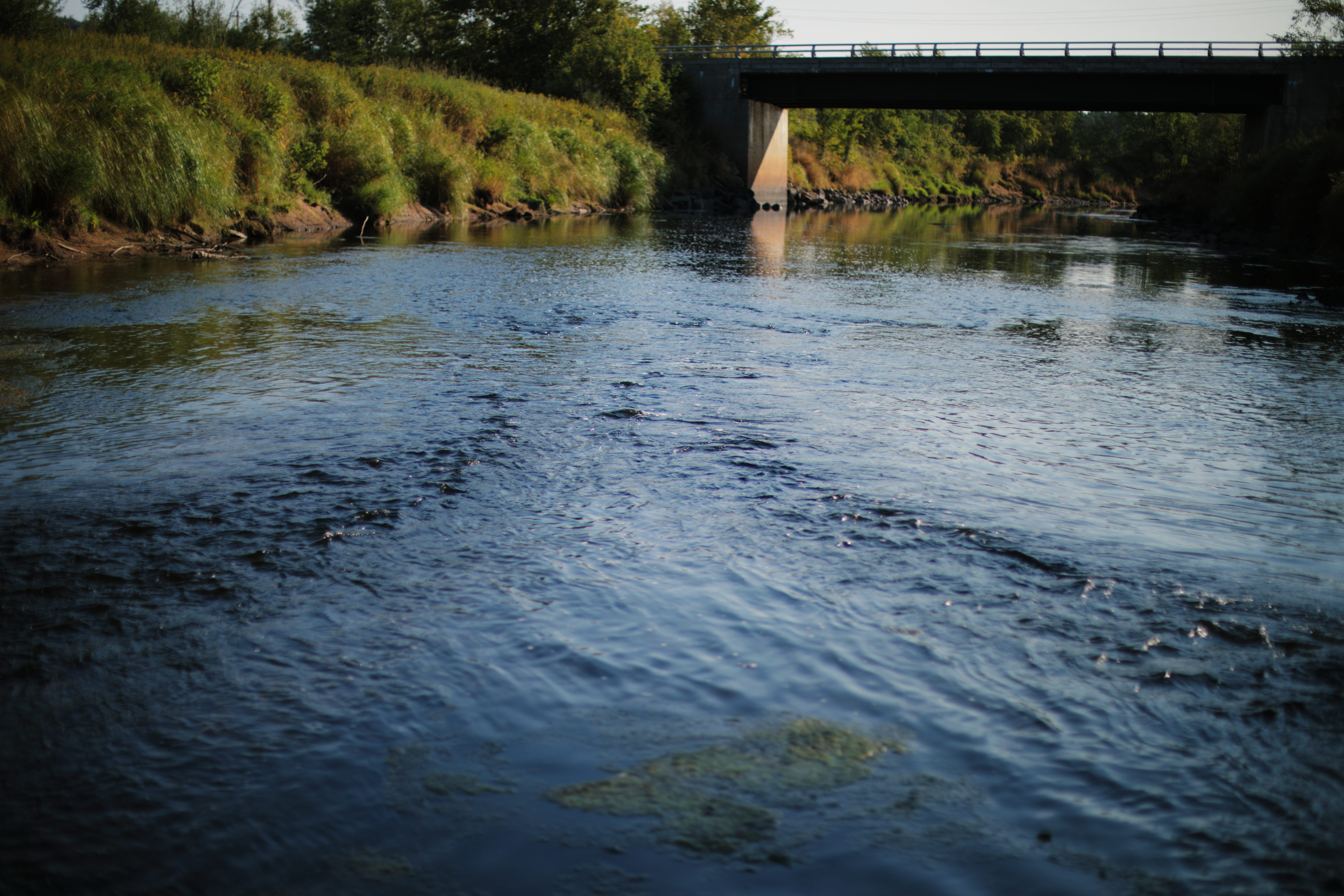 You might not notice from up on the road driving, but once you get east of the tidal influence at Bridgetown, the Annapolis River is rarely more than knee-deep these days. Since it's the deepest drought of my lifetime (and yours), I've been walking to all the places where I'll likely never walk again. Usually with my rubber boots on, as the water is getting pretty grungy and stagnant these days. Oh, well. Had a good scrub with the hose when I got home. Things out here are showing themselves that I've never seen before. This rock is a fine example. Sticking out like the fin of some ancient fish — perfect perch halfway across. As the gathering point of every stream and small river throughout the western Annapolis Valley, this is the last bastion of significant current between here and the ocean. Sinking just the little bit lower every day.